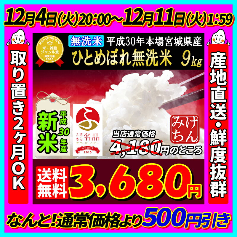 ![]() 価格: 3,680円 レビュー評価:4.31 レビュー数:331 当店のお米はもともと「玄米」での販売となっている為、袋への商品表示シールには「玄米」と表示されております。 こちらの商品は玄米から無洗米へ精米を行いお届け致しております為、商品表示シールにはもともとの「玄米」と表示されておりますが、精米後の無洗米9kgの商品で間違いはございませんので予めご了承下さい 商品名 平成30年宮城県産ひとめぼれ 名称 玄米(無洗米) 年産 30年産 産地 宮城県 品種 ひとめぼれ 使用割合 単一原料米 調整年月日 別途ラベルに記載 内容量 10kg(無洗米加工後9kg) 販売者 株式会社東穀宮城県柴田郡村田町大字村田字西原174-1TEL:0224-82-1717 ※不正購入と判断した場合にはご注文を取り消しさせて頂く可能性がございます。 また、お一人様で複数ご購入された場合、ご注文をキャンセルさせて頂く可能性がございますので予めご了承くださいませ。 ?????? (更新日時:2018/12/07 23:09) Supported by 楽天ウェブサービス |